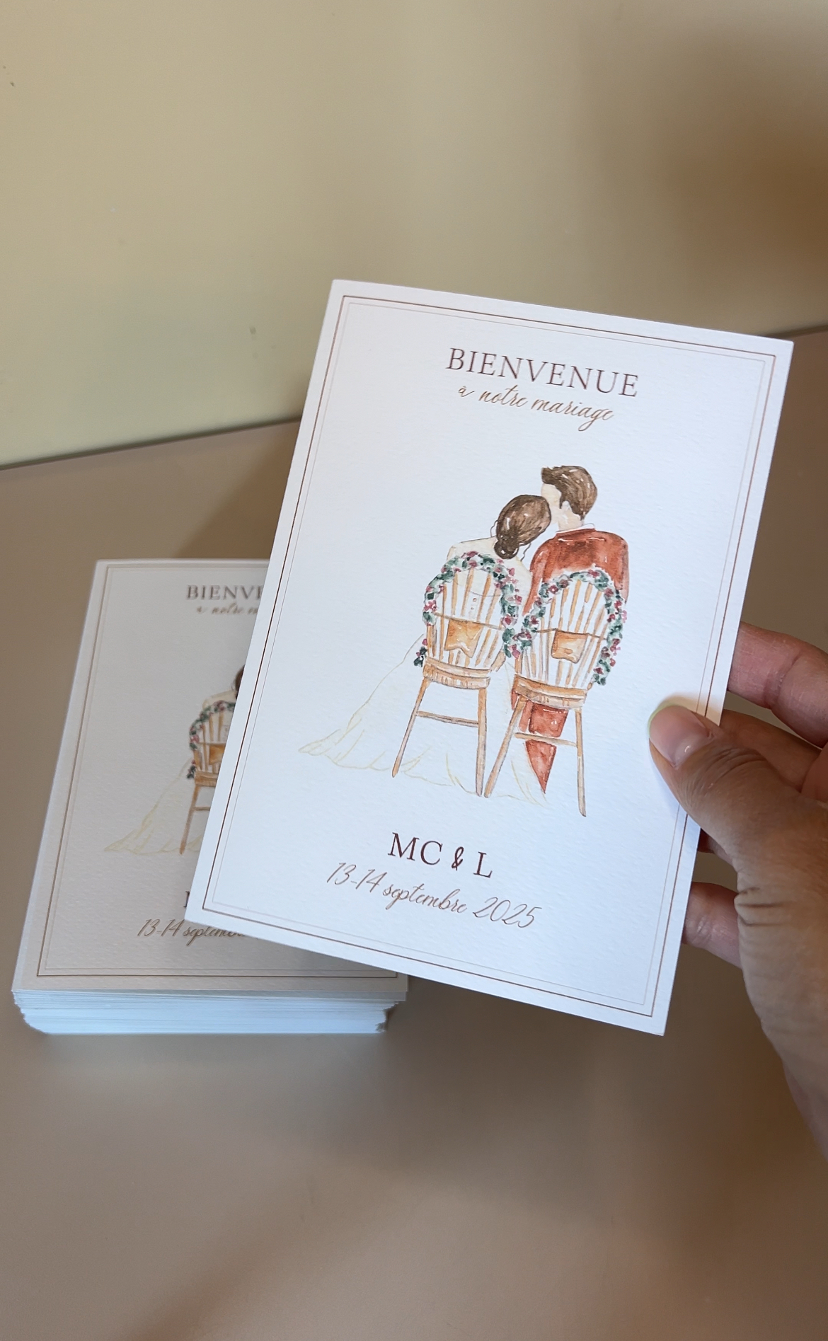 Décrivez-nous votre projet : faire-part, papeterie, signalétique… Nous vous guiderons pour créer un ensemble unique, harmonieux et raffiné.